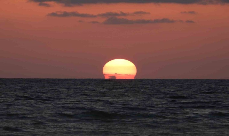Deniz Mahallesi’nde bulunan sahilde gün batımı ortaya eşsiz bir manzara çıkardı. Gün batımı ile birlikte deniz objektiflere yansırken, görenleri de kendisine hayran bıraktı.