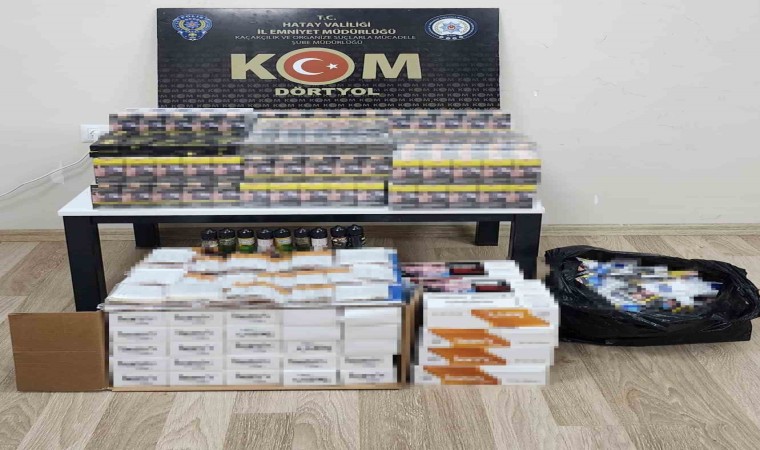 Hatay Emniyet Müdürlüğü görevlilerince kaçakçılık olaylarına yönelik yapılan çalışmalarda Payas Çağlalık Mahallesi’nde bulunan bir iş yeri ve ikamette, Dörtyol Numune Evler Mahallesi’nde durdurulan R.Ç. adlı şahsın yapılan üst aramasında; gümrük kaçağı 12 bin 400 adet makaron, bin 170 paket sigara, 980 adet doldurulmuş makaron, 9 adet elektronik sigara likiti, 14 adet elektronik sigara, 100 adet puro, 3 kilogram kaçak çay, 400 gram nargile tütünü ele geçirildi. Olayla ilgili olarak R.Ç., F.A. ve M.S. hakkında adli işlem yapıldı.