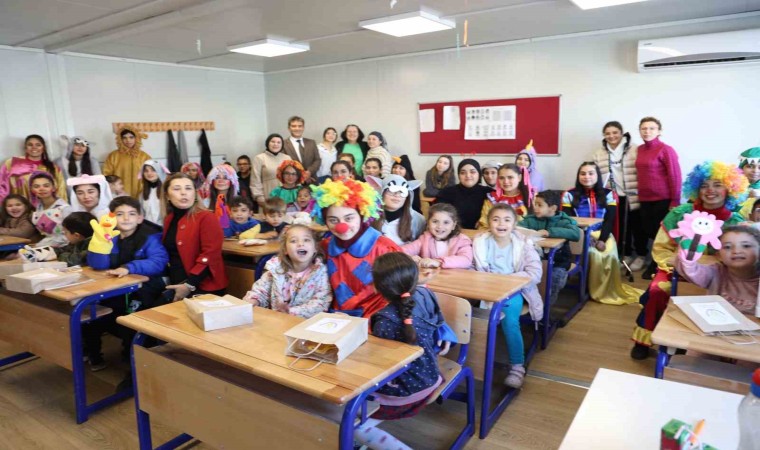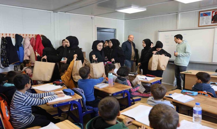 Hatay’ın İskenderun Sahil Kız Mesleki Teknik Anadolu Lise öğrencileri tarafından hazırlanan giysi ve kuklalar, konteyner kentte eğitim gören minik öğrencilere hediye verildi.