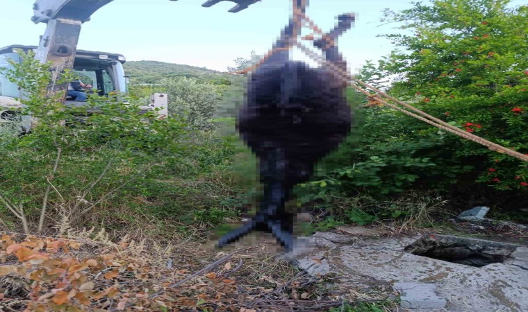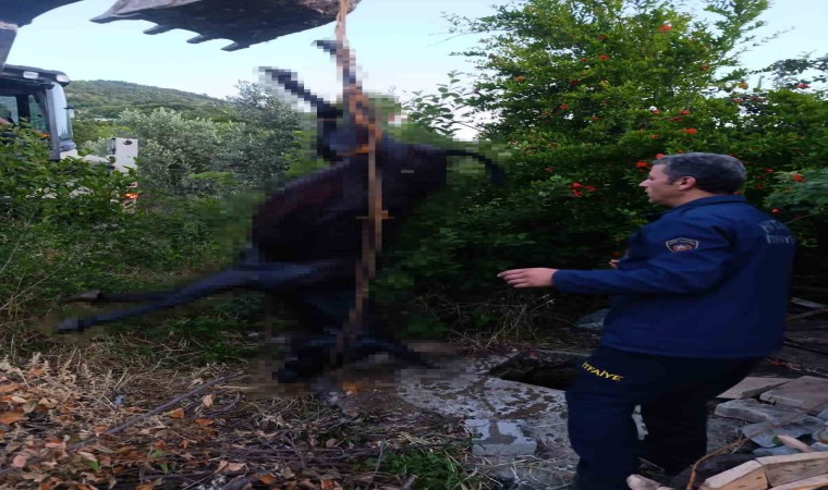 Hatay’ın Yayladağı ilçesinde kuyuya düşerek telef olan eşek, itfaiye ekipleri tarafından düştüğü yerden çıkarıldı.