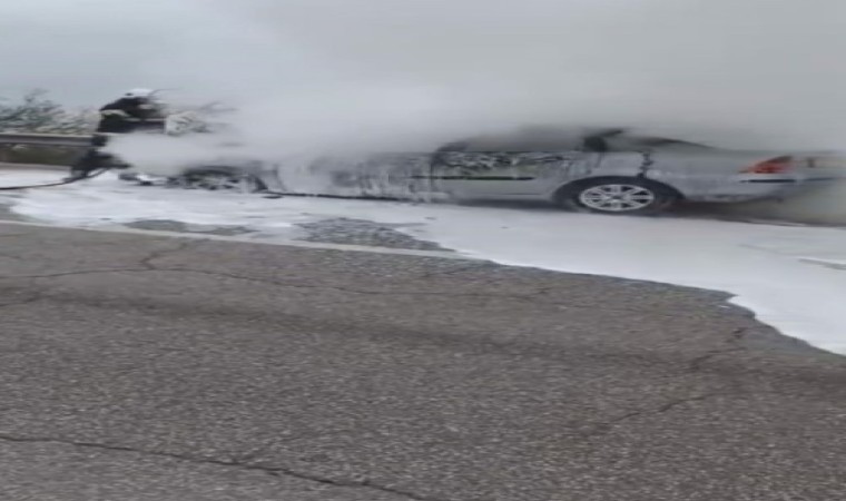 Hatay’ın Belen ilçesinde seyir halindeki otomobil alevler içinde kalarak yandı.