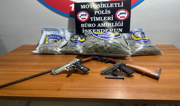 Hatay’da uyuşturucu ticareti ve silahla kaçakçılığı yapan 2 kişi operasyonla yakalanırken, 3 bin 272 gram esrar ve 2 adet ruhsatsız tabanca ele geçirildi.