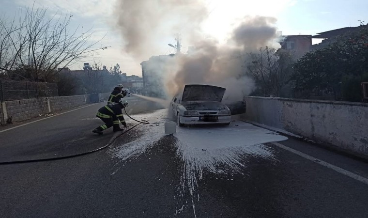 Hatay’ın Payas ilçesinde hareket halindeki otomobilde çıkan yangın, itfaiye ekiplerince söndürüldü.