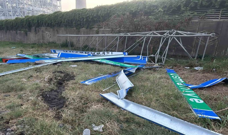 Hatay’ın İskenderun ilçesinde seyir halindeki tırın açık unutulan dorsesi karayollarına ait levhalara çarptı. Tırın trafik levhalarına çarpması sonucu yol trafiğe kapandı.