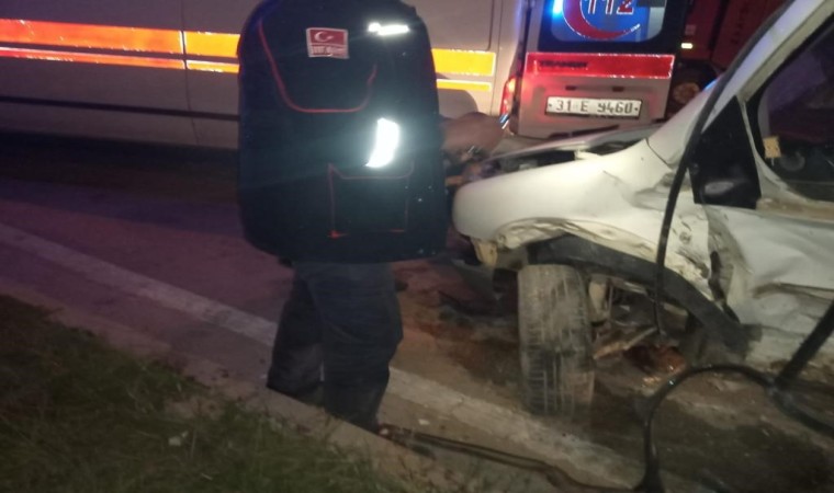Kaza, Antakya ilçesine bağlı Honda kavşağında meydana geldi. Hafif ticari araç sürücüsü direksiyon hakimiyetini kaybederek seyir halindeki otomobile çarptı. Kaza sonucunda 2 kişi yaralandı. Olay yerine polis, ambulans ve itfaiye ekipleri sevk edildi. İtfaiye ekipleri, araçta sıkışan 2 kişiyi kurtarıp sağlık ekiplerine teslim etti. Yaralılar, hastaneye kaldırıldı.
