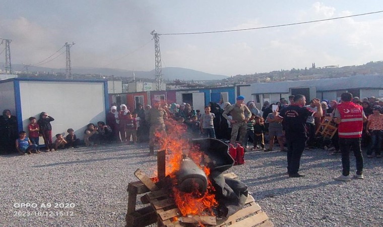 Hatay’da itfaiye ekipleri okulda ve konteyner kentte yangın tatbikatı yaptı.