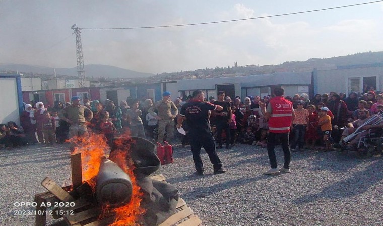 Konteyner kentte yaşayan sakinler ve anaokulu öğrencilerine, felaketlerde ve yangınlarda neler yapılmasına yönelik bilgi ve eğitim odaklı yangın tatbikatı yapıldı.