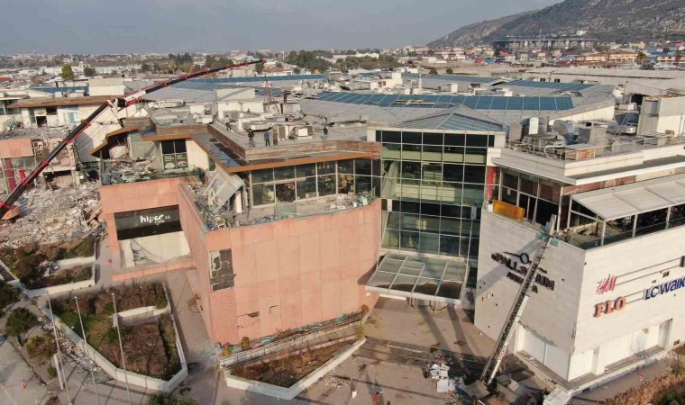 Hatay’ın Antakya ilçesinde 2013 yılında 150 milyon dolar maliyetle inşa edilen ağır hasarlı alışveriş merkezinin yıkımına başlandı.