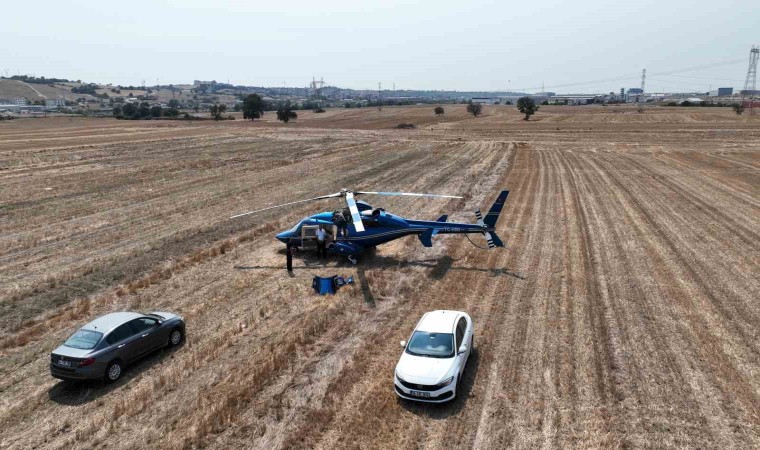 İstanbul’dan havalanan Hattat Holding’e ait TC-HMI kuyruk numaralı helikopter, Tekirdağ Çerkezköy’de biçili buğday tarlasına zorunlu iniş yaptı.