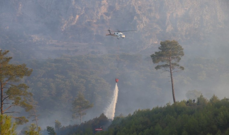 Muğla’nın Dalaman ilçesinde çıkan orman yangınında hava ekiplerinin alevlerle mücadelesi devam ediyor. Uçak ve helikopterler ardı ardına yaptıkları sortilerle alevlere su serpiyor.
