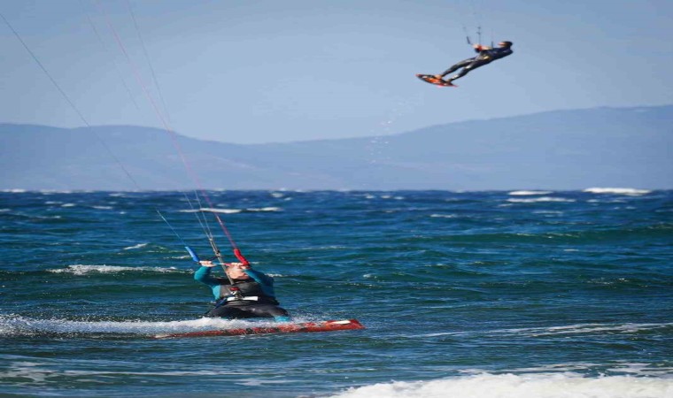 Bursa’nın Mudanya ilçesindeki Ayazma plajı, dünyada yeni gelişen bir spor dalı olarak gösterilen kiteboarding meraklılarının gözde mekanları arasında yer alıyor. Dev dalgalara ve rüzgara meydan okuyan sporcular adeta denizde dans ediyor.