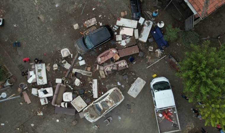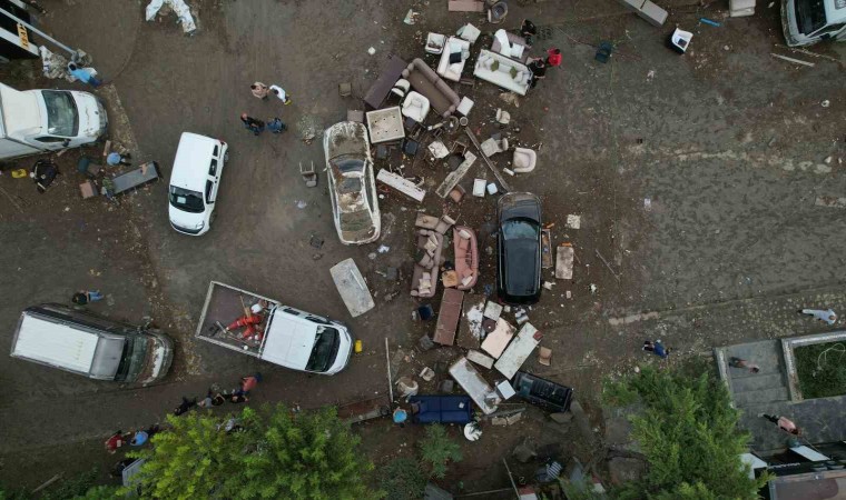 İstanbul’da etkili olan sağanak yağışta sel sularının vurduğu Mobilyacılar Sitesi havadan görüntülendi. Drone görüntüsüyle selin boyutu gözler önüne serildi. Dükkanlarda bulunan mobilyalar dışarı çıkarken, park halindekli araçlar ağır hasar aldı.