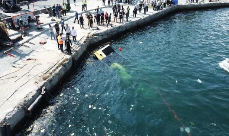 havadan fotoğraflar // Eminönü’nde denize düşen otobüs vinçle çıkarılıyor