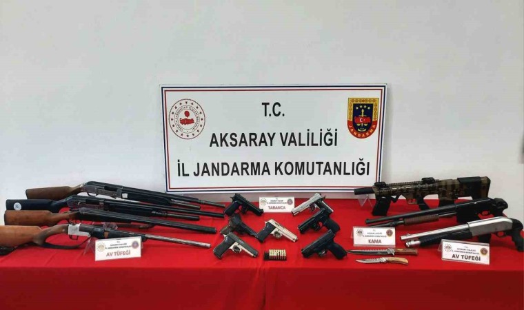 Edinilen bilgiye göre, İl Jandarma Komutanlığı Kaçakçılık ve Organize Suçlarla Mücadele (KOM) Şubesi ekipleri sosyal medya üzerinde yaptığı devriye faaliyetinde 6 ayrı şahsın meskun mahalde tabanca ve tüfeklerle havaya ateş açarak videoları da kendi sosyal medya hesaplarında paylaştığını tespit etti. Bunun üzerine Aksaray Cumhuriyet Başsavcılığı koordinesinde harekete geçen jandarma KOM ekipleri, isimlerini belirlediği 6 şüphelinin peşine düştü. Aksaray merkezde ikamet ettikleri tespit edilen 6 şüpheliye yönelik eş zamanlı operasyon düzenleyen jandarma ekipleri, şüphelileri bir bir yakaladı. 6 şüphelinin ikametinde yapılan aramalarda 7 adet ruhsatsız av tüfeği, 7 adet ruhsatsız tabanca, 40 adet tabanca fişeği, 44 adet av tüfeği fişeği ve 2 adet kama ele geçirildi. Ele geçirilen suç unsurlarına cumhuriyet savcısının talimatı ile el konulurken, gözaltına alınan şahıslar hakkında yasal işlem başlatıldı.