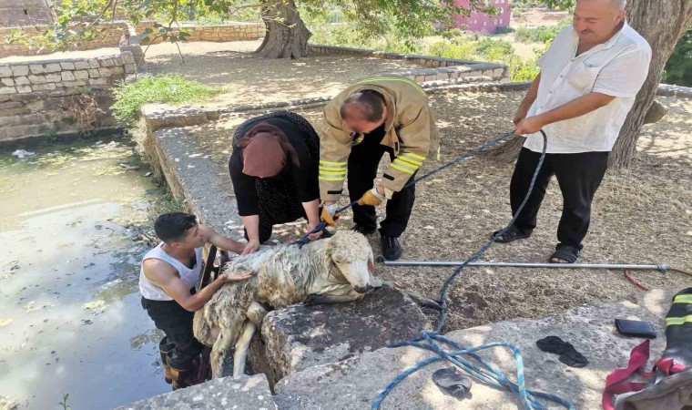 Mardin’in Artuklu ilçesinde havuza düşen koyun, itfaiye erleri tarafından kurtarıldı.