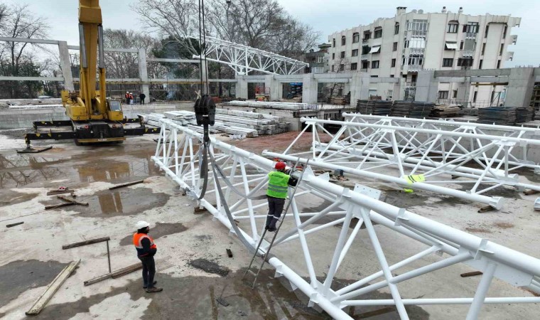 Gençlik ve Spor Bakanlığı’nın destekleriyle hayat bulan proje kapsamında Havuzlu Park’ın bulunduğu yaklaşık 30 bin metrekare alan sil baştan yenileniyor. Mevcut yapının yerine daha modern tekniklerle, fonksiyonel olarak daha uygun, kullanıcı kapasitesi artırılmış, ulusal müsabakaların da düzenlenebileceği standartlarda proje tasarlandı. Proje inşaat alanı 8 bin 500 metrekare olan yapı, iki blok olarak kurgulandı. Tesisin girişi, mevcuttaki yapı gibi parselin güney tarafından olacak. Ana blok; idari birimler, danışma, bekleme-sergi ve fuaye alanı, spor faaliyetlerinin yürütüleceği idari birimler, seminer odası, otopark ile parka ve tesise hizmet edecek restoran ile servis birimlerinden oluşacak. Diğer blok olan spor bloğunun alt katında soyunma odaları, duşlar, hamam ve sıcak su havuzları ile açık havuzların teknik birimleri yer alacak. Havuz katında ise; FINA standartlarına uygun tam olimpik kapalı yüzme havuzu ile açık yüzme havuzu bulunacak. Açık havuzun bir kısmının derinliği artırılarak, atlama havuzu olarak da kullanılabilecek. Mevcut atlama kulesinin yerine FINA standartlarına uygun 10 metrelik bir atlama platformu planlandı. Açık havuzlun kotunda hizmet verecek şekilde spor salonu, ofisler, çok amaçlı bir salon ve kafeterya tasarlandı. Kaba inşaatın tamamlandığı projede çelik çatı imalatlarına başlandı. Diğer taraftan da duvar örme ve elektrik mekanik imalatları devam ediyor.