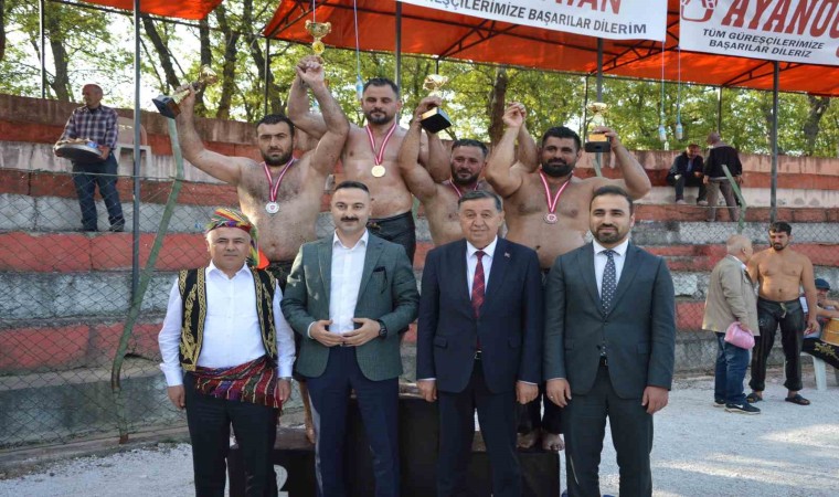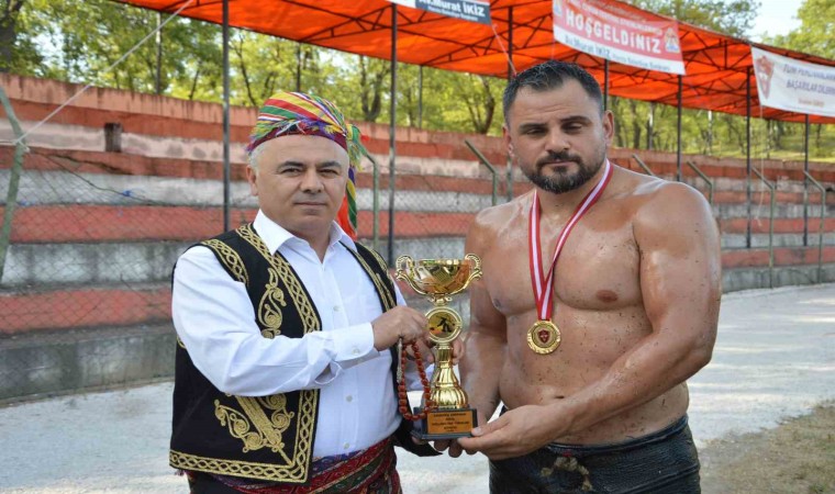 Güreşlerde dereceye giren pehlivanlara madalyaları protokol tarafından takdim edildi.