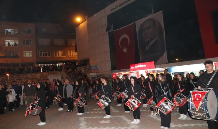 Samsunun Havza ilçesinde Cumhuriyet’in 100. yılı etkinlikleri çerçevesinde fener alayı ve kortej yürüyüşü yapıldı.