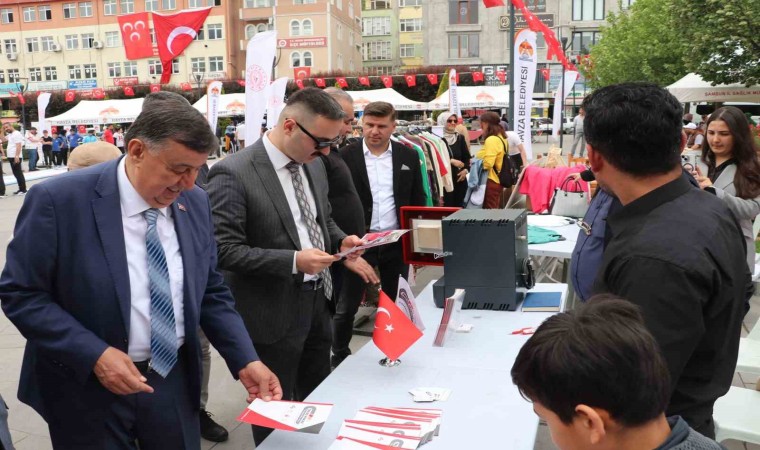 Kaymakam Ayvat ve Belediye Başkanı İkiz, stantları gezerek firma yetkililerinden ürünler hakkında bilgiler aldı.