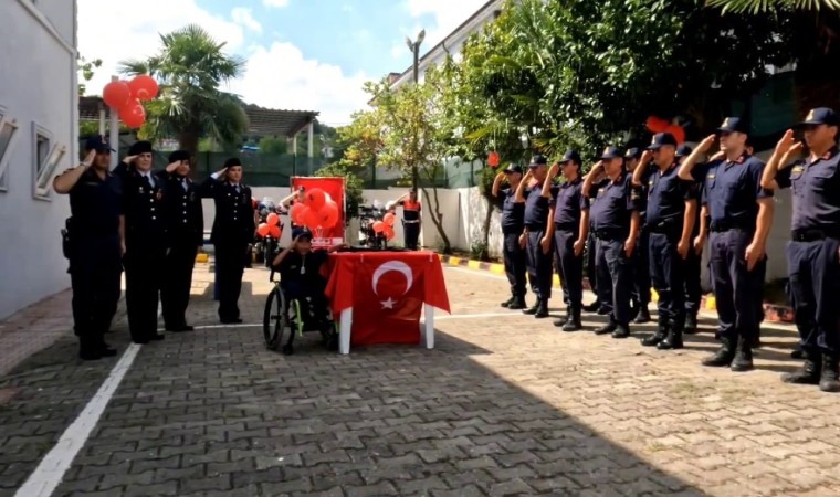 Sakarya İl Jandarma Komutanlığı, 14 yaşındaki özel gereksinimli Süleyman Canik için temsili askerlik töreni düzenledi. Silahaltına alınması mümkün olmayan ve askerlik hayali ile büyüyen minik çocuk için Serdivan İlçe Jandarma Komutanlığı’nda temsili askerlik töreni gerçekleştirildi. 53 personelin katılımı ile düzenlenen temsili törende, minik Süleyman’ın mutluluğu adeta gözlerinden okundu. Tören sonunda yemin eden Süleyman’a terhis belgesi verildi.