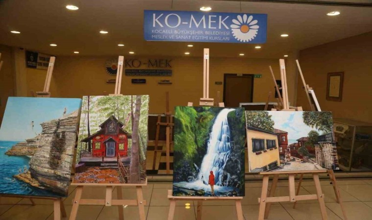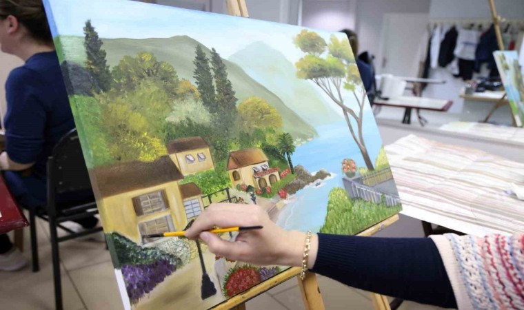 Kocaeli Büyükşehir Belediyesi Meslek ve Sanat Eğitim Kurslarında (KO-MEK) resim eğitimi alan kursiyerler, hayallerini resmediyor.