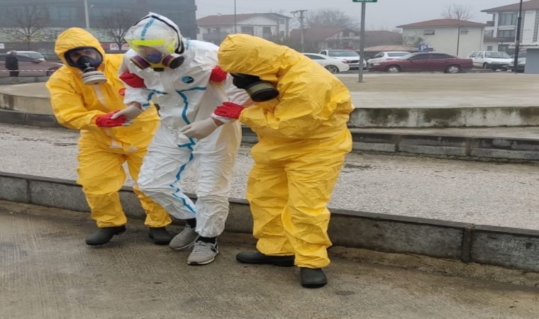 DÜZCE(İHA) – Düzce Atatürk Devlet Hastanesinde kimyasal maddeden etkilenen hastane personelini Kimyasal, Biyolojik, Radyolojik, Nükleer (KBRN) ekibi tarafından anında müdahale edilerek izolasyon ünitesine alındığı tatbikat gerçeğini aratmadı.