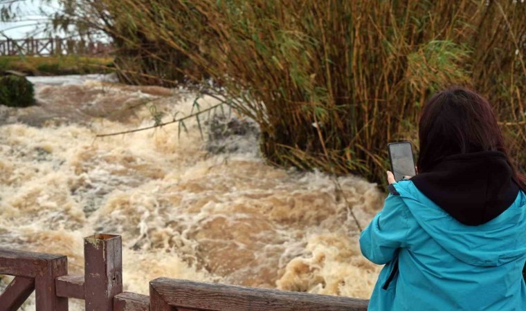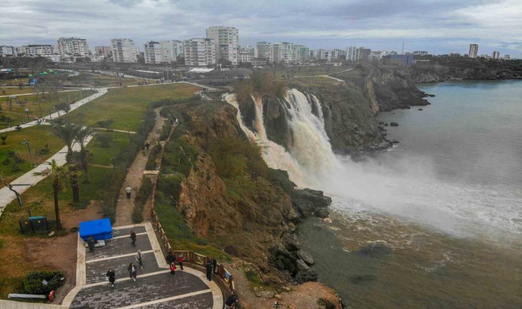 Yağıştan dolayı kentin dünyaca ünlü Düden Şelalesi ise adeta çamur çağladı. Şelalenin denizle buluştuğu alan kahverengiye bürünürken, turistler ve kent sakinleri o anları fotoğraflayarak ölümsüzleştirdi.