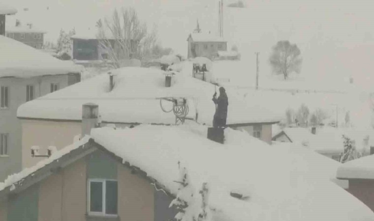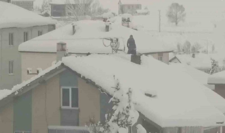 İki katlı evin çatısına çıkan iki kişi ellerinde küreklerle çatıda biriken karları temizlemeye çalıştı. Hiçbir güvenlik önlemi almayan şahıslar, hayatlarını tehlikeye attı. O anlar ise vatandaşlar tarafından cep telefonuyla kayıt altına alındı.