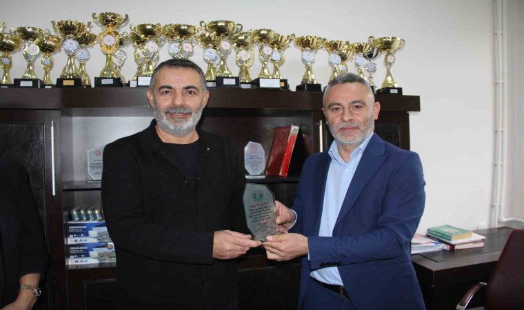 Yardım yapılan okul müdürleri tarafından Göçmen çifti ve Por. Dr. Özcan Güngör’e teşekkür plaketi takdim edildi.
