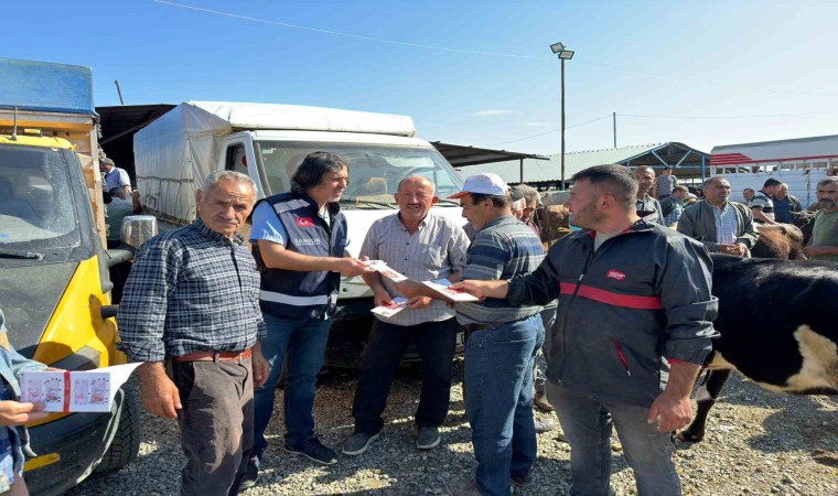 Samsun’da KOM polisi, kurban satışı yapılan hayvan pazarında vatandaşları sahte paraya karşı uyardı.