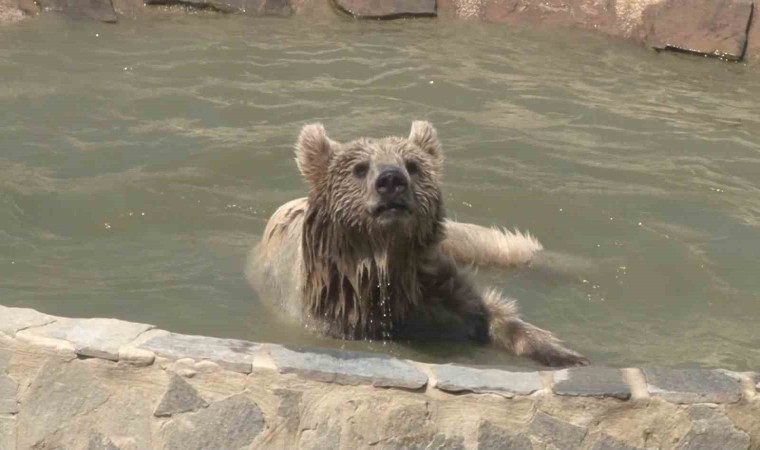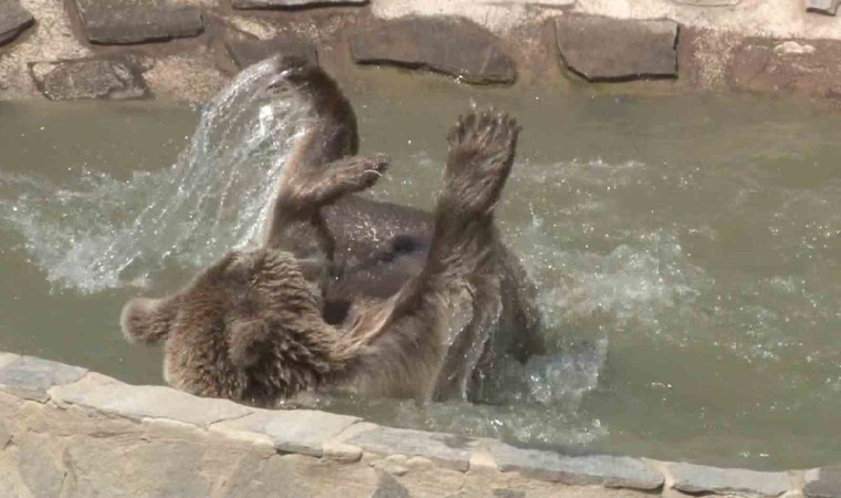 İstanbul’da artan sıcak hava, insanları olduğu kadar hayvanları da bunaltıyor. Çekmeköy’de bulunan hayvan rehabilitasyon merkezinde sıcak havanın etkisinden kurtulmak isteyen hayvanlar, havuzlarda ve fıskiyeler ile verilen sularla serinliyor.