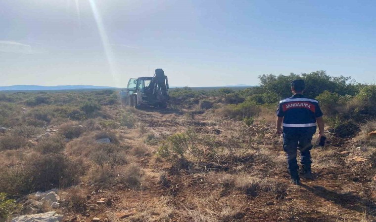 Aydın’ın Didim ilçesinde hazine arazisinde iş makinesi ile kaçak kazı yapan şüpheli jandarma ekipleri tarafından yakalandı.