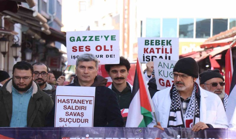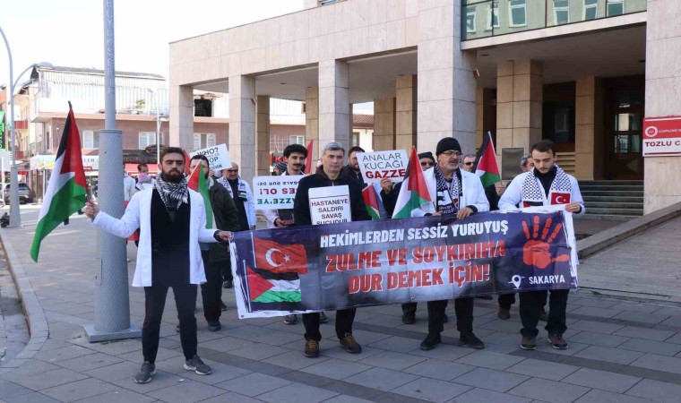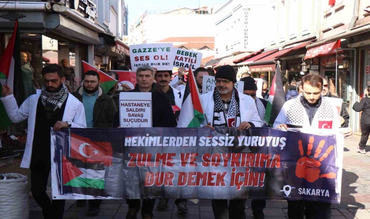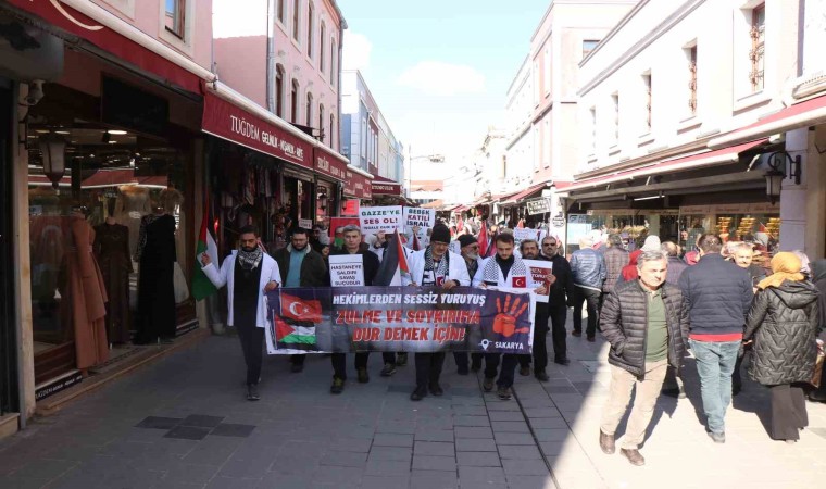 Adapazarı ilçesi Uzun Çarşı’da bulunan Tozlu Camii önünde toplanan hekimler, İsrail’i kınamak için ‘sessiz yürüyüş’ gerçekleştirdi. Beyaz önlüklerini giyip, ellerinde pankartlar, Türk ve Filistin bayrakları ile Adapazarı Kültür Merkezi önüne kadar yürüdü. Sessiz bir şekilde yürüyüş gerçekleştiren hekimler, buradaki basın açıklamasının ardından programı sonlandırdı. Yürüyüşün ardından grup adına açıklama yapan Acil Tıp Doktoru Erdem Şentürk, “İsrail terör devletinin Filistin’de uyguladığı sistematik zulüm ve işgal devam ediyor. Evler okullar, hastaneler bombalanıyor; Gazze halkı abluka altında açlığa mahkum ediliyor. Su vanalarını kapatan, tarlaları bombalayan ve şehre gıda girişlerini engelleyen İsrail, bunları tüm dünyanın gözü önünde, saklamaya dahi gerek görmeden alenen gerçekleştiriyor.