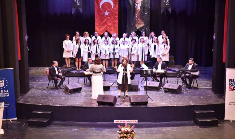 Bursa Büyükşehir Belediyesi tarafından 14 Mart Tıp Bayramı Haftası münasebetiyle düzenlenen konserde beyaz önlükleriyle sahne alan hekimler, sanat güneşi Zeki Müren’in eserlerini büyük bir başarıyla seslendirdi.