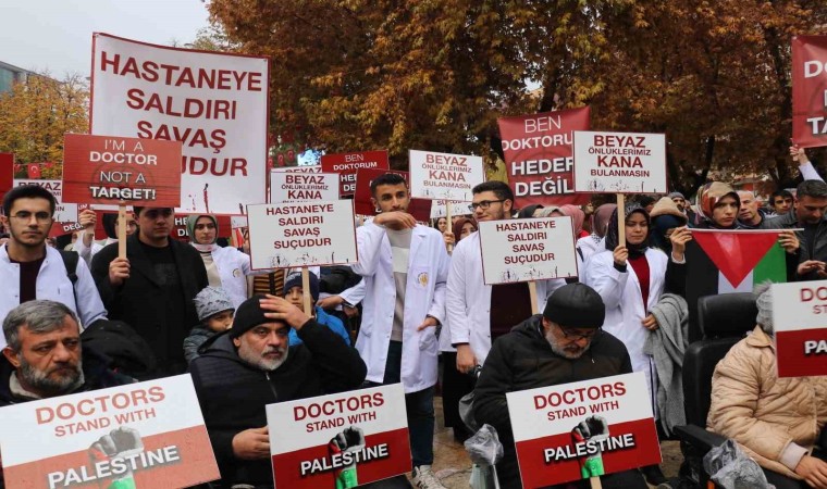 Malatya ile birlikte 20 ilde eş zamanlı olarak sessiz yürüyüş yaparak açtıkları pankartlarla İsrail’in Filistin’de sivil halka uyguladığı soykırımı protesto eden hekimler, Hürriyet Parkı önünde toplanıp Kernek Meydanı’na kadar yürüdü.