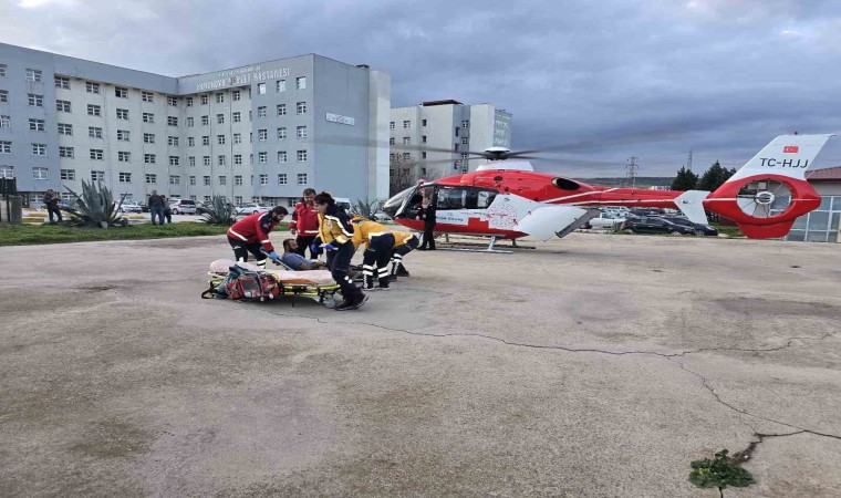 Çanakkale Mehmet Akif Ersoy Devlet Hastanesinde kalp krizi tanısı konulan hasta, helikopter ambulansla Balıkesir’in Bandırma ilçesi Bandırma Eğitim ve Araştırma Hastanesine sevk edildi.