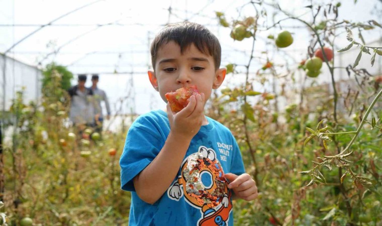 Hasat öncesi öğrencilere meyve suyu, kek, öğretmenlere ise fokur fokur kaynayan semaverden çay ikram edildi. Ardından öğrenciler seraya alındı, burada kızaran domatesler, olgunlaşan biberler, çilekler ve yeşil soğanlar toplandı. Öğretmenleri gözetiminde topladıkları ürünlerin tadımını yapan öğrenciler, kendi elleriyle toprakla buluşturdukları sebzelere tam not verdiler.