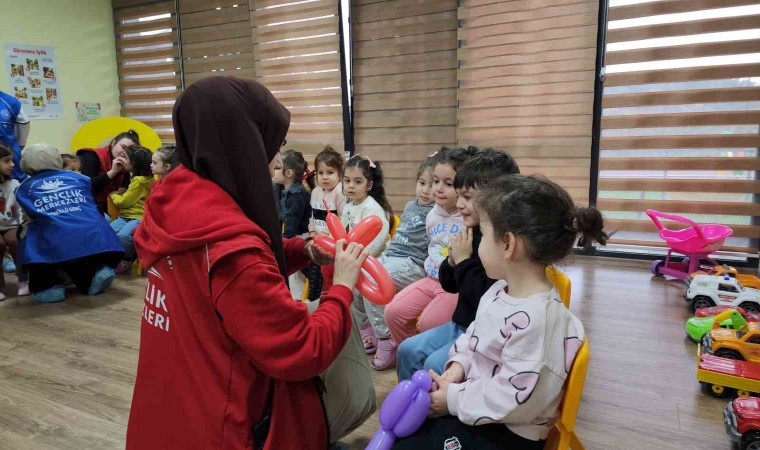 Gençlik ve Spor İl Müdürlüğü Bahçeşehir Gençlik Merkezi’nde görevli gönüllü gençler, ziyaret ettikleri kreşin minik öğrenciler ile oyunlar oynadı, sağlık ve sosyal alanlarda eğitici uygulamalar yaptı. Etkinliklerin ana konusu; ekip çalışmasına katkı, ortak hareket etmenin önemi, yardımlaşma ve dayanışma gibi erdemler oldu. Ayrıca balondan yapılan oyuncaklar, sandalye kapmaca yarışması gibi geleneksel oyunlar sayesinde öğrenciler renkli ve eğlenceli bir gün geçirdi.