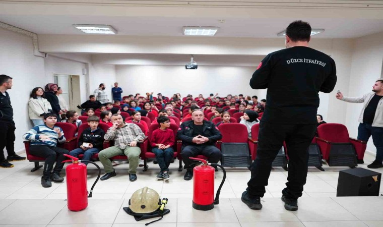 Ayrıca, Şehit Cihan Aksarı Ortaokulu’nda düzenlenen tecrübe paylaşımı söyleşisine de Düzce Belediyesi İtfaiye personeli konuk oldu. İtfaiye çalışanı, öğrencilerle yangın güvenliği ve itfaiyeciliğin zorlukları hakkında deneyimlerini paylaştı, öğrencilerin sorularını yanıtladı.