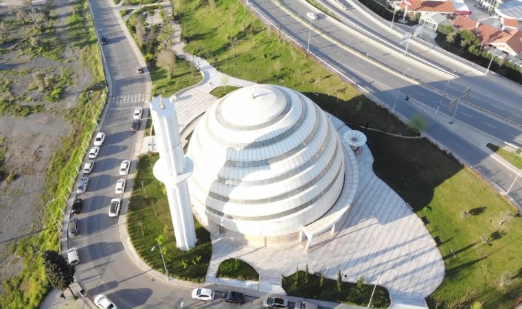 Kartal’da bulunan Ahmet Yılmaz Camii, yarım küre şeklindeki yapısıyla ilgi çekiyor. Mimarisi ve minaresi ile göz dolduran cami, dron ile görüntülendi.