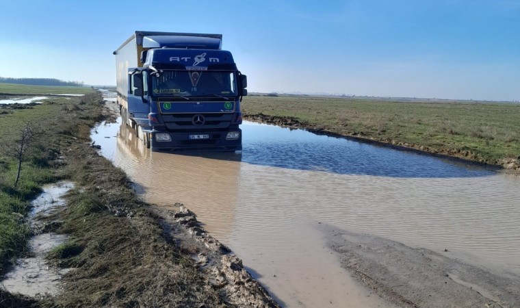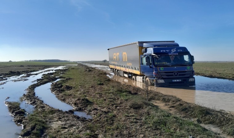 Tekirdağ’da bulunan Veliköy Organize Sanayi Bölgesi’nin içinden geçen toprak yoldaki çamur sorunu, hem sürücüleri hem sanayicileri çileden çıkartıyor. Fabrikalara mal getiren tırlar ve kamyonların yanı sıra küçük araçlar ve sanayiciler de çamur nedeniyle zor anlar yaşıyor.