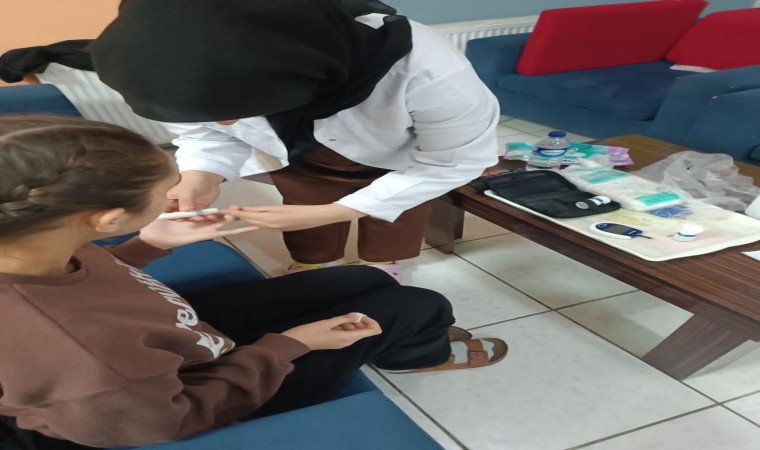 DÜZCE(İHA) – Düzce Gençlik ve Spor Müdürlüğü yurdunda kalan ve hemşirelik bölümünde okuyan öğrenciler, arkadaşlarının ve yurtta çalışanların açlık ve tokluk şekerini ölçtü.