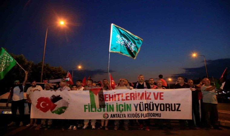 Antalya’da yaklaşık 3 bin kişi, geçtiğimiz günlerde İran’da düzenlenen suikast sonucu şehit edilen Hamas Siyasi Büro Lideri İsmail Heniyye’nin son çağrısı olan 3 Ağustos Cumartesi günü için tüm Arap, İslam ve dünya ülkelerini Gazze halkına destek olmak adına meydanlara inme çağrısını yerine getirmek için toplandı. 75 STK’nın oluşturduğu Antalya Kudüs Platformu’nun çağrısı ile akşam namazında Çelebi Sultan Mehmet Camii’nde toplanan vatandaşlar, Gazze’nin sesi olmak için yürüdü. Binlerce kişi, ‘Antalya’dan Kudüs’e direnişe bin selam’ ve ‘Katil İsrail Filistin’den defol’ sloganları attı.