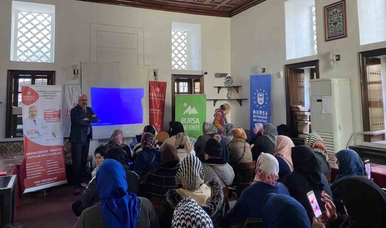 Haraççıoğlu Medresesi’nde, Bursa Kent Konseyi Kadın Meclisi üyelerine meme kanseri hakkında bilgiler veren Hayat Hastanesi Genel Cerrahi Uzmanı Op. Dr. Servet Yetgin, "Her 8 kadından birisinin meme kanserine yakalanma riski taşımaktadır. Ayrıca her 2 dakikada 1 meme kanseri teşhisi konulduğunu unutmamak gerekiyor. Meme kanseri risk faktörleri arasında, aile öyküsü, genetik, geç yaşta doğum yapmak, erken yaşta adet görmek, geç yaşta menopoza girmek, uzun süre doğum kontrol ilaçları kullanmak, menopoz sonrası hormon tedavisi görmek, alkol ve sigara tüketmek sıralanabilir” dedi.