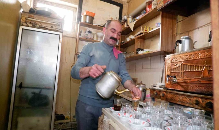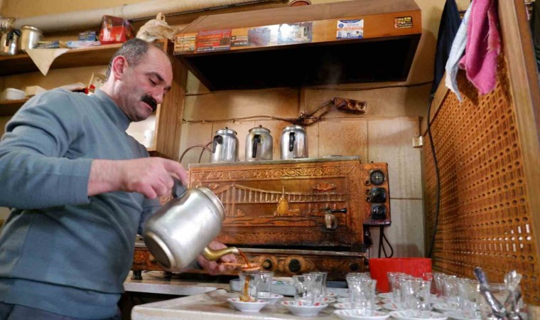 Ülkemizde en çok çay tüketen illerin başında gelen ve kıtlama çayı tutkusuyla ün yapan Erzurum’da, bir çay ocağı işletmecisi müşterilerine her çay servisinde mutlaka dua ediyor ve bardağı masaya bırakıyor.