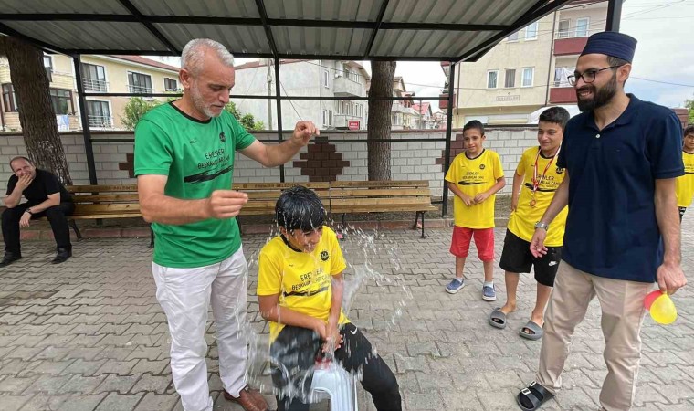 Sakarya’nın Adapazarı ilçesinde görev yapan imam, cami bahçesinde düzenlediği etkinliklerle çocukların hem Kur’an-ı Kerim kursuna gelenlerin sayısını arttırıyor hem de eğlenerek öğrenmelerini sağlıyor. Masa tenisi, halat çekme, çuval yarışı gibi her gün düzenlenen çeşitli etkinlikleri duyan çocuklar adeta camiye akın ediyor.