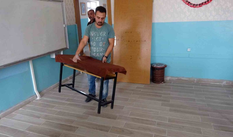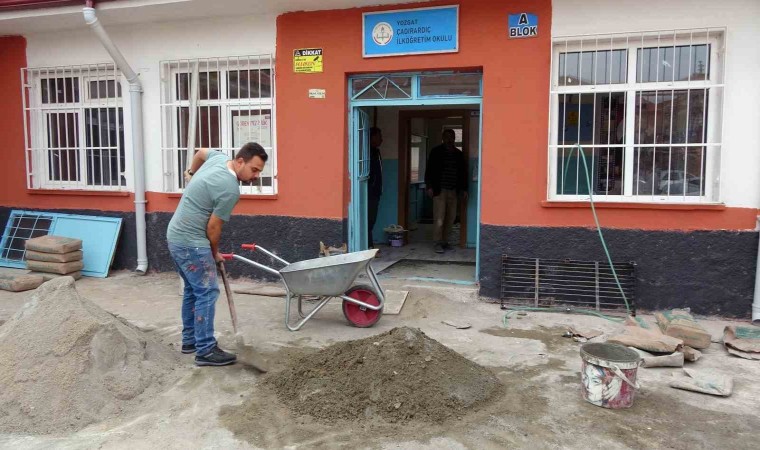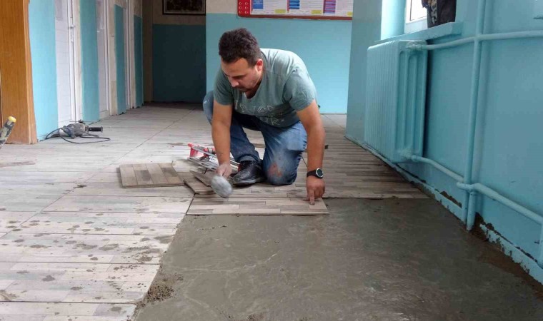 Yozgat’ta Çadırardıç İlköğretim Okulu Müdürü Mustafa Ocak, sadece idarecilik görevini değil okulun fiziki şartlarını iyileştirebilmek amacıyla tamirat ve tadilat işlerini de kendisi yapıyor.
