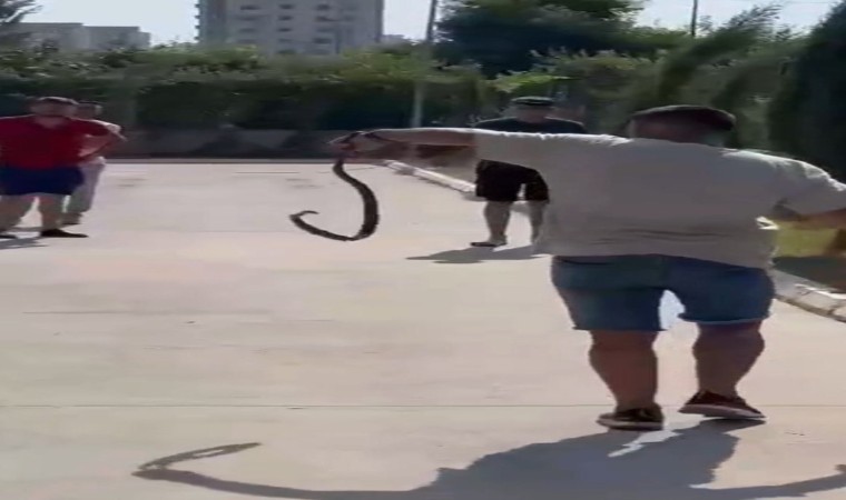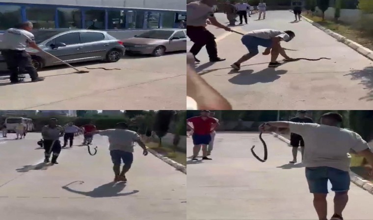 Olay, Erdemli ilçesinde çevre yolundaki araç muayene istasyonunda yaşandı. Bahçeden duvarı aşarak istasyona geldiği değerlendirilen yılanı görenler panik yaşadı. Yılan önce sıra bekleyen araçların altına girdi. Yılanı gören güvenlik görevlisi bir kürek yardımıyla yılanı uzaklaştırdı. Çevredeki vatandaşların paniklediği o anlarda bir vatandaş ise yılanı eliyle tutup istasyon bahçesi dışındaki bahçelik alana bıraktı.