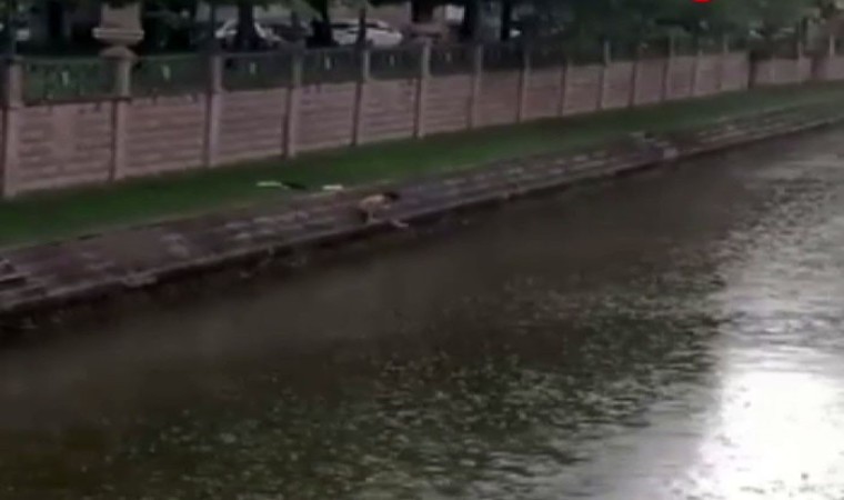 Eskişehir’de etkili olan kuvvetli sağanak yağmur sırasında herkes ıslanmamak için sığınacak yer ararken, üstünü başını çıkartıp canını hiçe sayarak Porsuk Çayı’nda yüzen vatandaş görenleri hayrete düşürdü.