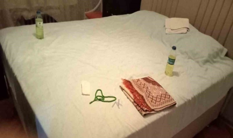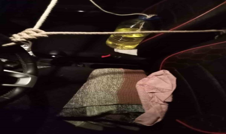 Yatağın üzerine seccade, tespih ve benzin dolu şişe koymuş